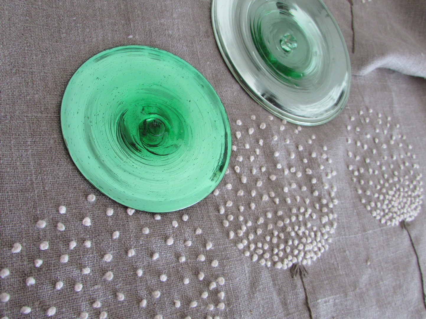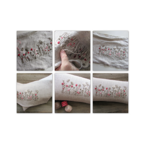 Ne posnemamo vnaprej pripravljenih vzorcev, vsak motiv je izviren, izmišljen sproti, brez prerisovanja vzorca na blago. Vsak končni izdelek je unikat, pravzaprav samostojna slika, zato je naše vezenje SLIKANJE Z IGLO.